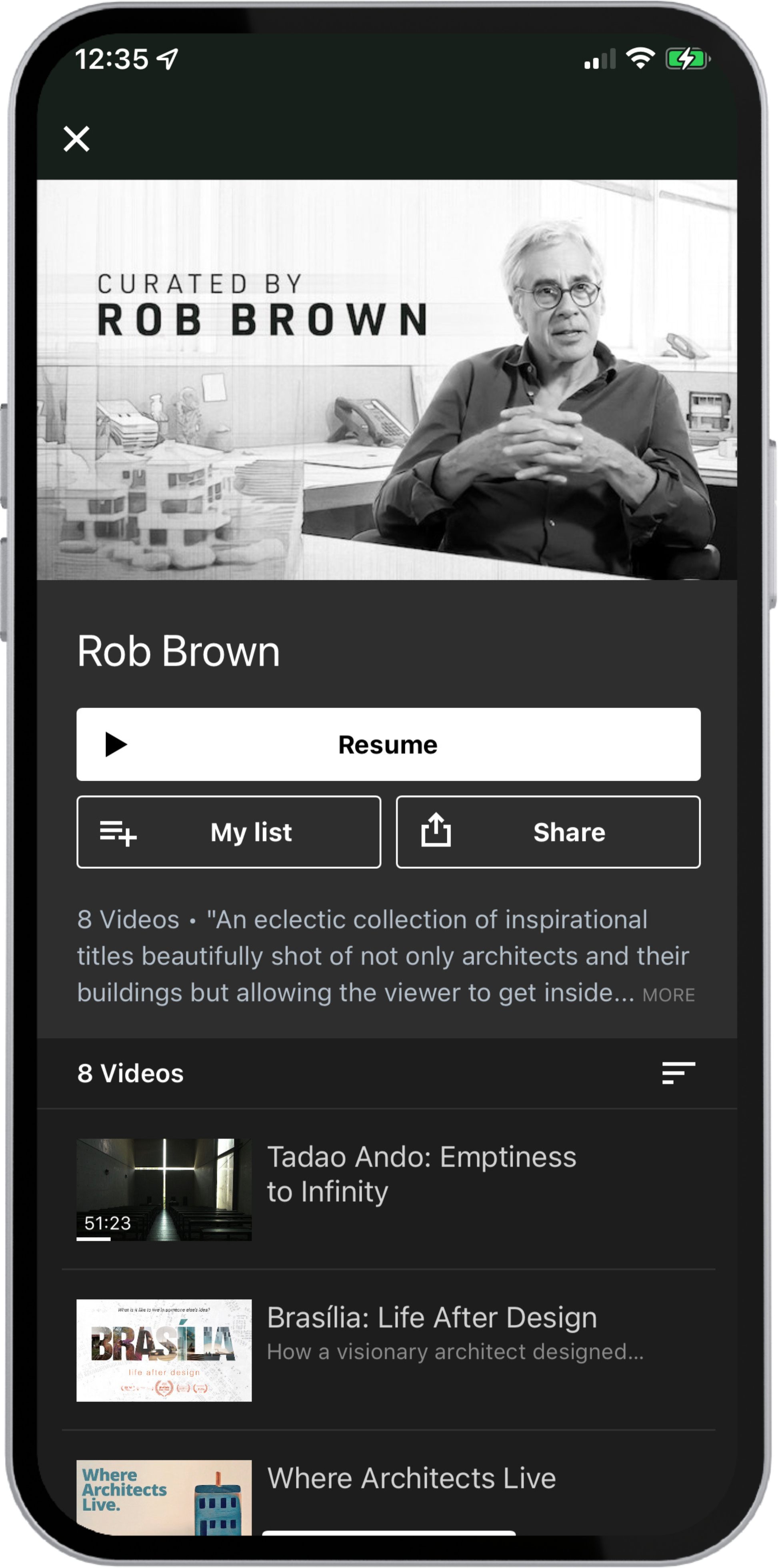 Don't let an algorithm decide what you watch next. Our films are hand picked by leading architects and experts.